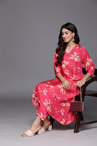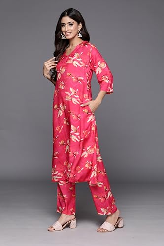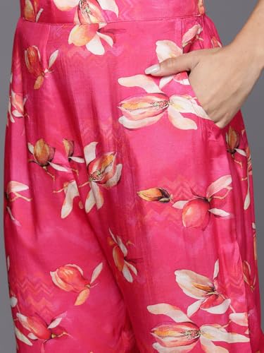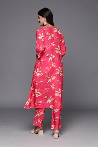 Libas Cream Printed Chanderi Silk Straight Kurta With Trousers & Dupatta