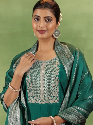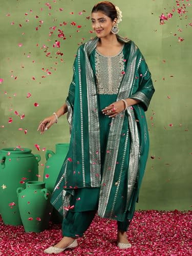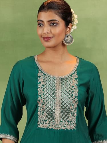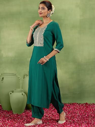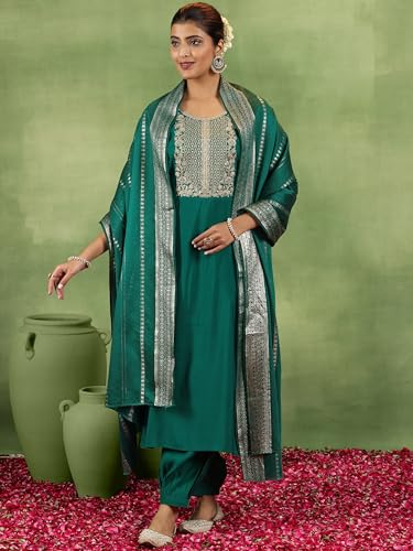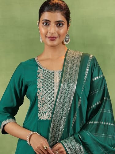 INDO ERA Women's Embroidered Pure Cotton Calf Length Straight Kurta & Pant With Dupatta Set (SHTUR7967)