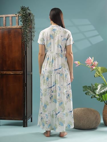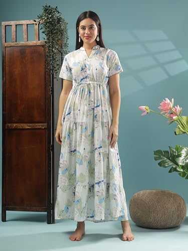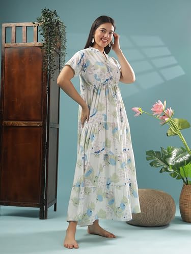 Soulemo Women Cotton Embroidered Floor Length Nighty