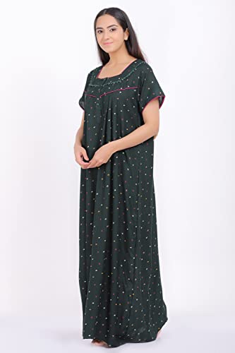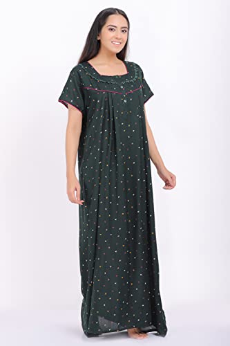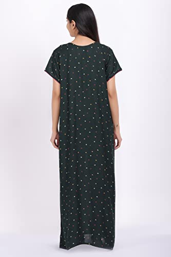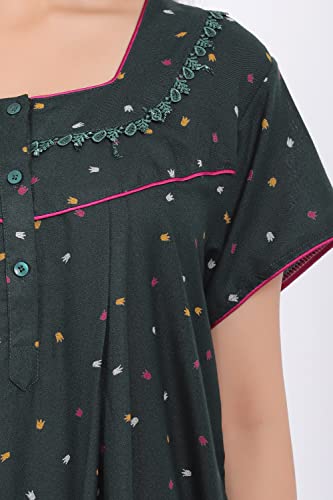 ZEYO Women's Rayon Floral Embroidery Mid Thigh Length Nighty Night gown 5678