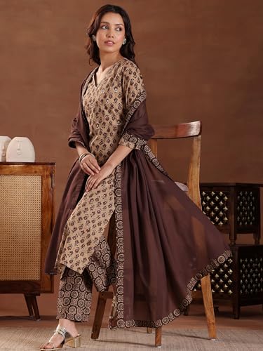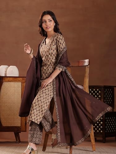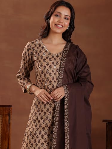 Libas Maroon Printed Poly Crepe Straight Kurta With Trousers & Dupatta