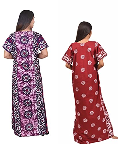 RILO Nighty Half Sleeves for Women Hosiery Cotton Maxi Gown Pack of 2